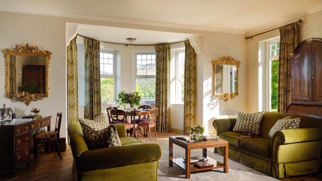 A vibrant hotel with wonderful facilities like our Deluxe Destination Spa SÁMAS, Bamford Treatments, 25mt Lap Pool,Gym, Cinema and complimentary Daily Lifestyle Programme, but a place where we are not ashamed to be old fashioned. This Victorian landmark, dating from 1897, with its splendid views over the glistening waters of Kenmare Bay, the ever changing light of the Cork and Kerry Mountains, the adjoining 18 hole golf course, garden walks and the Heritage Town of Kenmare is home to one of Ireland’s finest hotels. Tradition, in every sense, is important to us as is the fun of today, the devilment of a younger guest, the delight of a couple holding hands and the delivery of true service. It is a rare place where the decadence of the past is married with the modernism of today. The Dining Room offers delicious food featuring local producers. A La Carte and Tastng Menus are vailable. The Cocktail Bar or Champage Bar are prefect spots to meet before or after dinner. Whiskey Tasting is a speciality of the hotel.