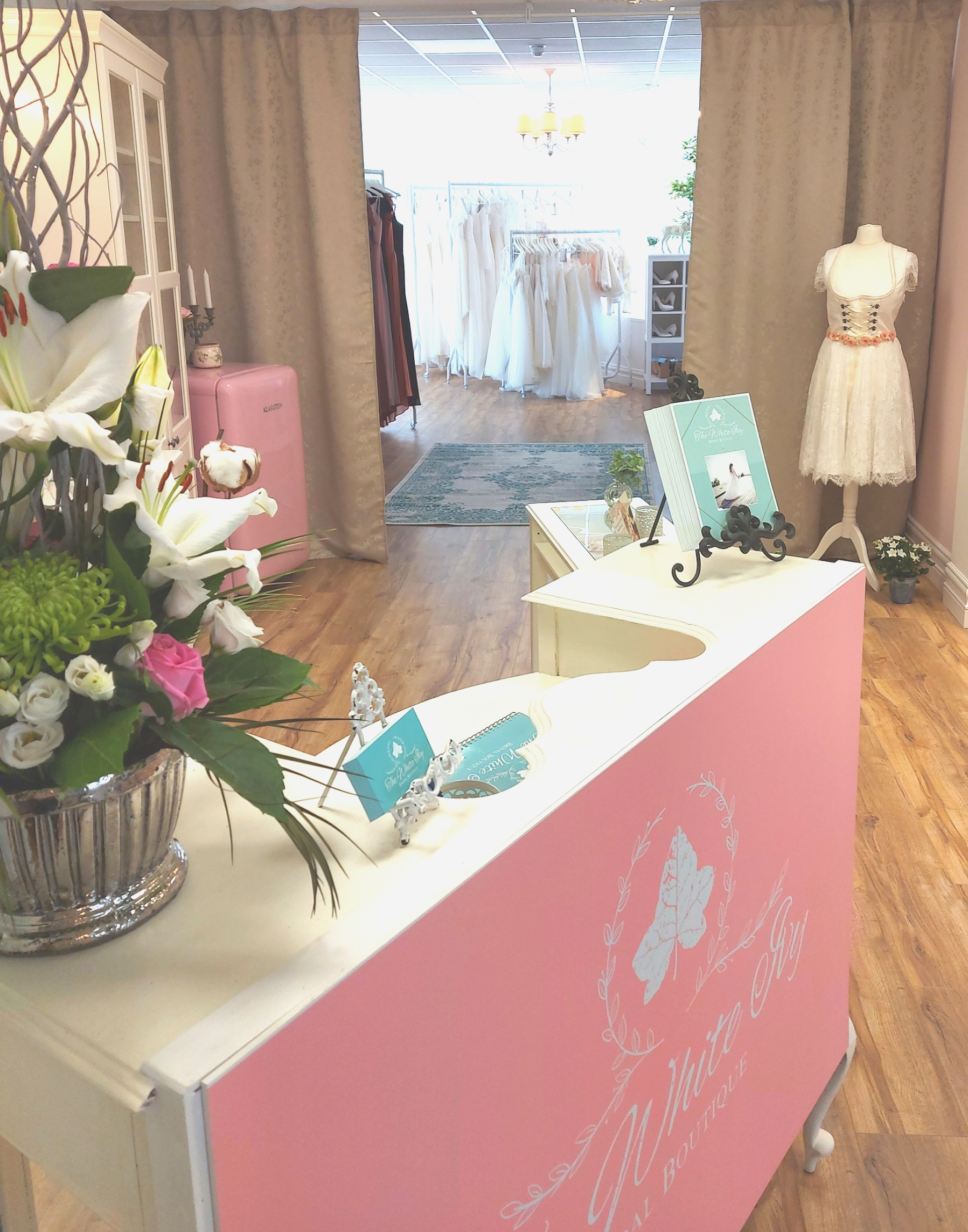 Thanks to a beautiful room layout, our store is flooded with light to let our gowns and you sparkle while our spacious fitting and show area will give you room to unfold and get comfortable with your dress.